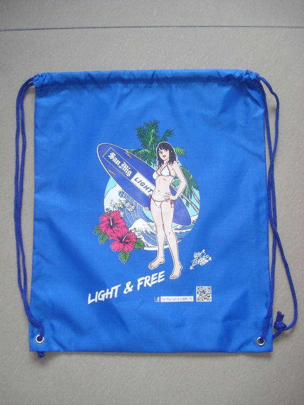 本款產(chǎn)品為廣州添盈定做產(chǎn)品:燙畫束繩背包|索繩袋|拉繩袋廠家|束口袋定做歡迎電洽